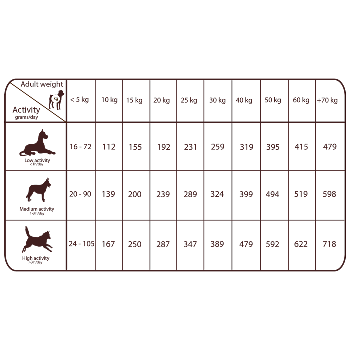 - deze brok bevat geen ingrediënten die geassocieerd worden met verstoring van de spijsvertering, zoals maïs- of tarwegluten, soja, rogge en lactose;